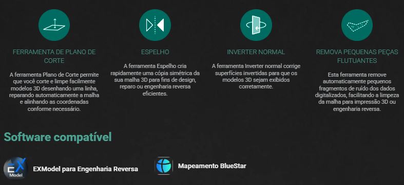EXScan Rigil é um software de PC dedicado para todo o espectro de fluxos de trabalho de digitalização profissional avançados, que fornece funções avançadas de pós-processamento e edição de malha para limpeza de modelos e melhor integração ao fluxo de trabalho de design 3D.
