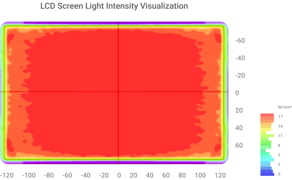 Para atingir alta precisão e confiabilidade de impressão, dividimos a tela em 60 zonas e a calibramos com uma ferramenta de tela cheia, garantindo que a variação da intensidade da luz permaneça dentro de ±3% * para uma tolerância de impressão de ≤0,05 mm.