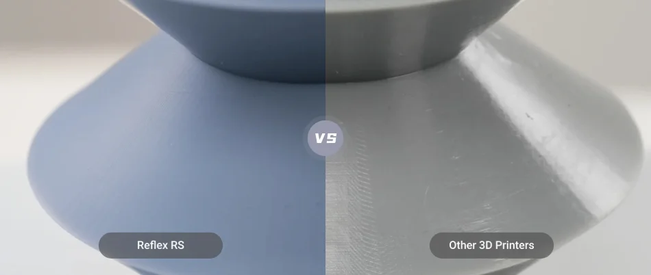 Utilizando uma lógica de controle de movimento de sete segmentos por camada, o RS lê dados do sensor de força em tempo real 80 vezes por segundo, permitindo ajustar parâmetros de movimento de forma eficiente, reduzindo o tempo redundante e prevenindo falhas de impressão.